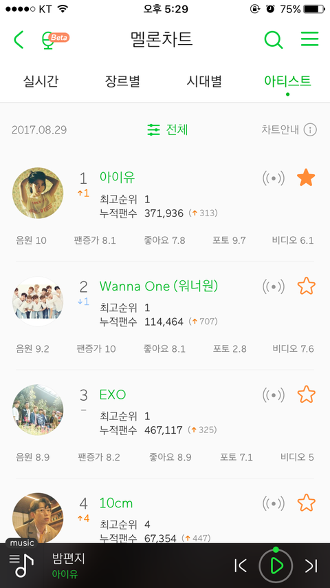 괜히 뿌듯하게시리ㅎㅎㅎ ㅎㅎ지금 밤편지 11위고 3시쯤에는 9위도 했었ㅇ무ㅠㅜㅜㅠㅡ더 많이 듣자 우리 더 올려보자 ㄹㅇ.. 외쳐 갓편지