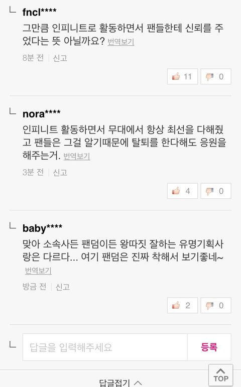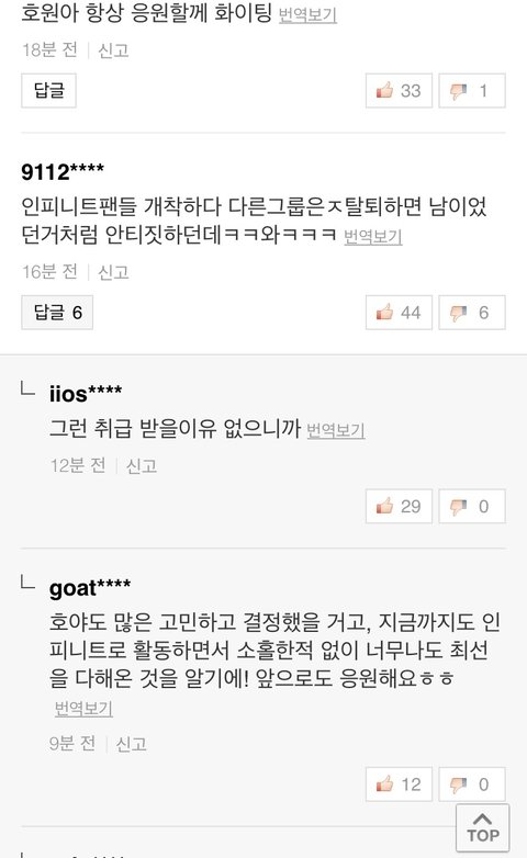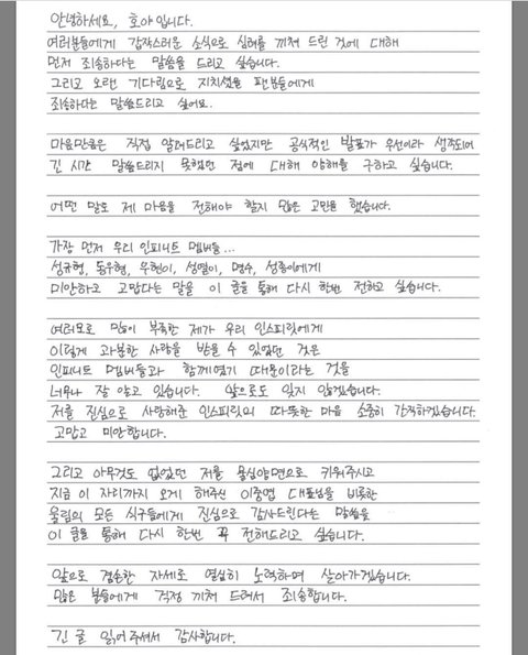 인피니트 노래 나오면 듣고 예능 나오면 가끔 보고 괜찮게 생각했던 사람으로서 이번에 호야 탈퇴 소식이 나도 적잖이 충격이긴 했는데 저녁되니까 더 충격?인게