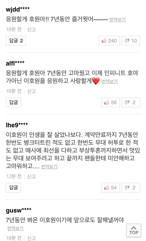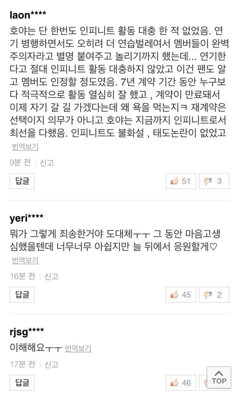 네이버 메인에 기사 막 뜨는데 베플에 다 고마웠다 여전히 응원한다 이런 거 있고