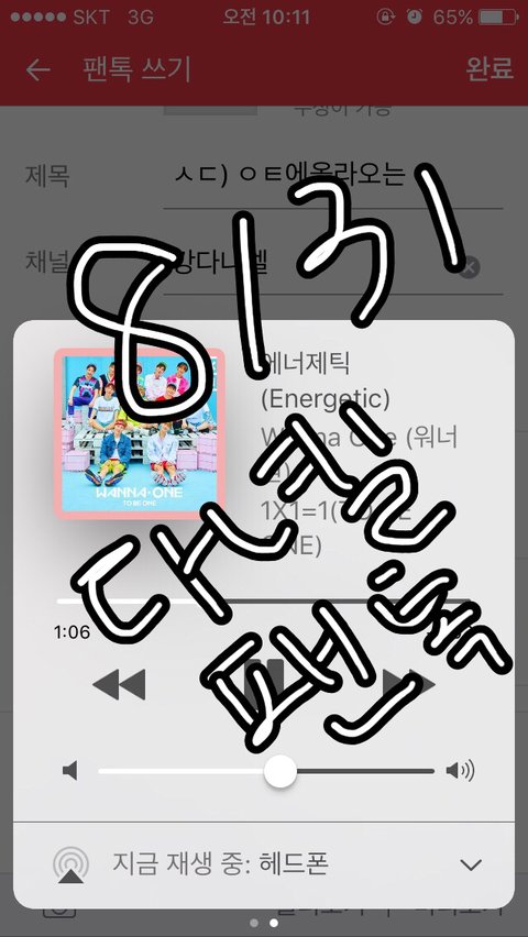 (녤글 몇개있을래 팬톡와달라고 댓글달러가니까 어떤 너부리가 먼저 저짤로 쓰고있길래!)