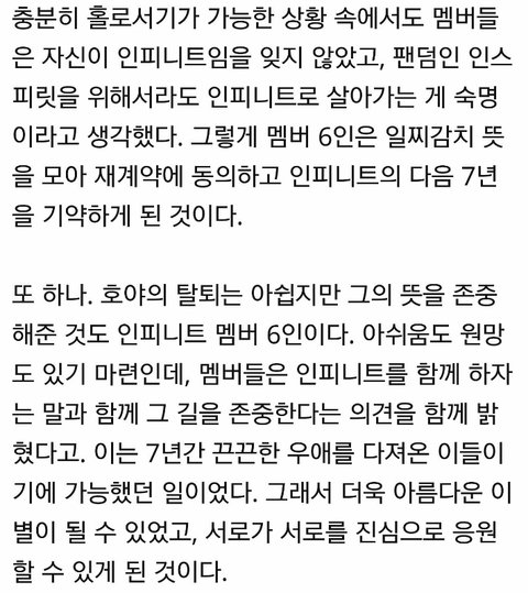 힘든일이 있지만 이일로 인해 우리가 인피니트에게