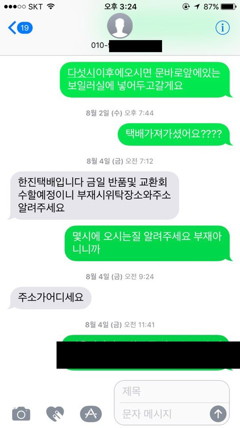 신 - 일단 택배회사한테 얘기해보고 다시 연락드릴께요