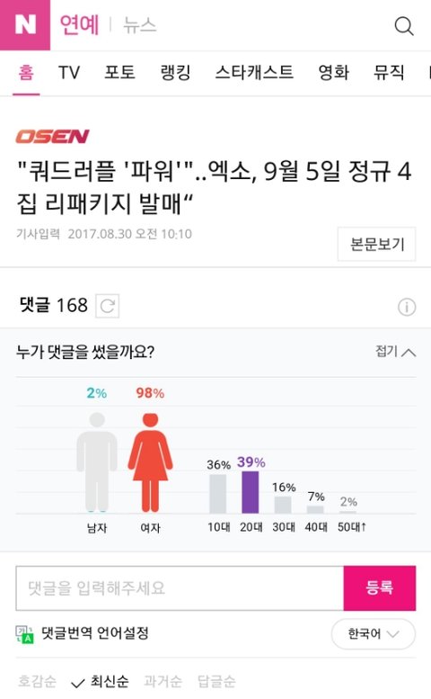 웅 엑소 대상