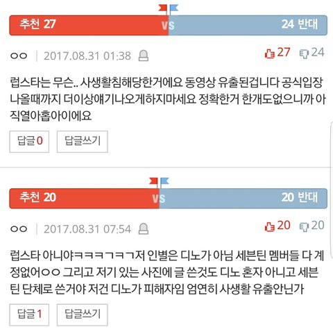 이런 댓글에 반대 수좀 봐..ㅋㅋ걍 내용 안보고 반대찍는거지?진짜 걍 소름이야 19살애를 불륜이네 뭐네..걍 탈판이 답인듯..ㅇㅇ