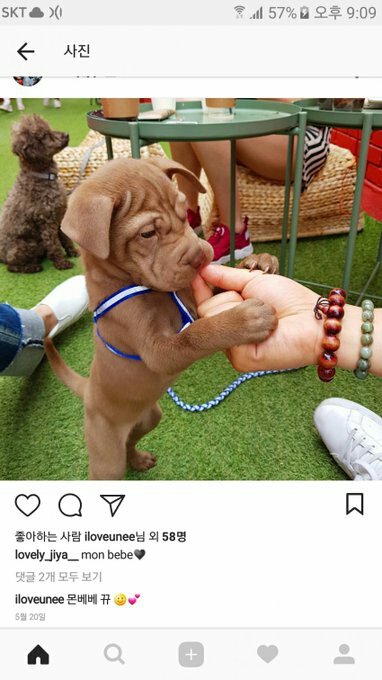 김윤희님 친구인 강아지 주인이 사진을 올리면서 mon bebe 라고 썼고