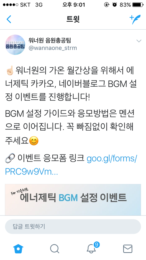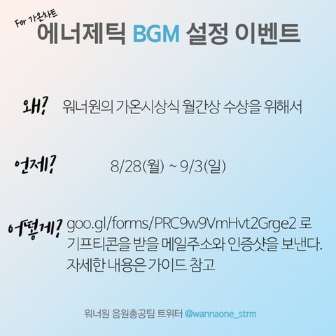 가온 월간상을 위한 일이니까 워너원, 강단이를 위해서 참여하면 좋을것같아
