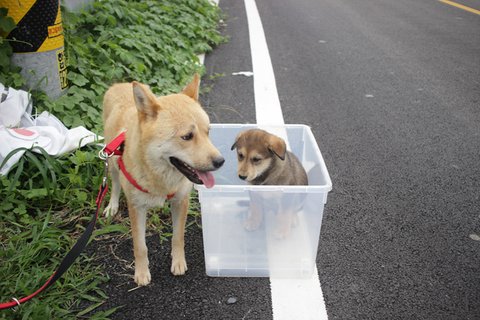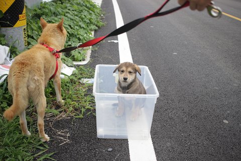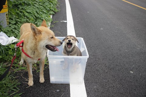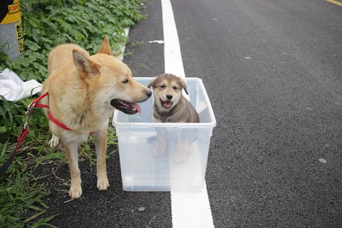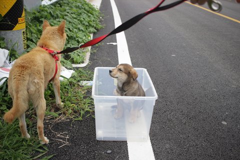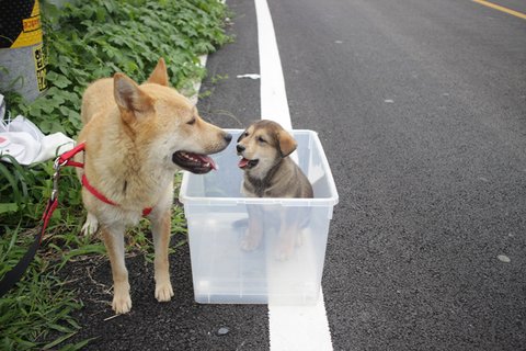 그렇지만 , 앞으로 어미개 만큼 클 새끼들을 제몸하나 갈곳없는 큰멍멍이 곁에 두는것은 욕심이었어요~