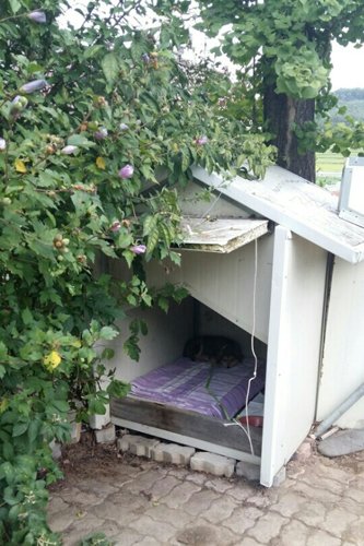 큰멍멍이가 머무는 견사 내부인데 , 땅을 파고 자꾸 탈출해서 , 전부 막아뒀는데