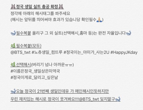 우리 화력 살짝 부족해 더 더 알리자 사진 계속 올리구!!! 그리고 영어 해시는 지금 실트인걸로 대문자로 하자!!! 정국이가 보고 웃을수있게 화이팅 ❤️❤️