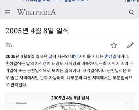 그리고 2005년에 일식 관련된 거 있나해서 쳐보니까 4월 8일에 일식 있었더라 4월 8일 데뷔 일!!