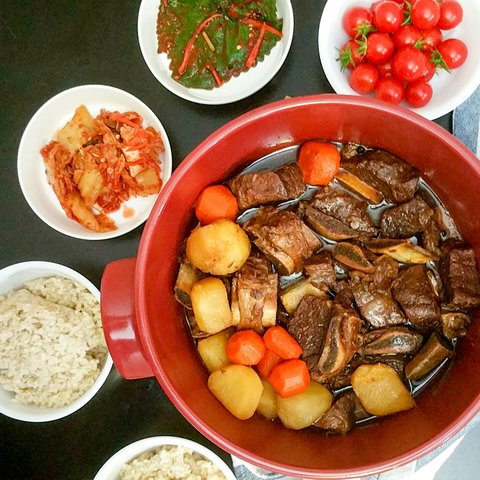 아이들이 있어 갈비는 이제 필수 구입품이 되었네요 ㅎㅎ 갈비찜 하는 날은 다른 반찬이 필요 없어 휑한 식탁.