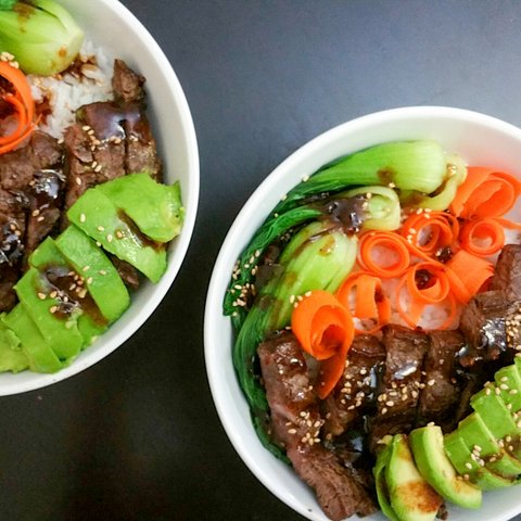 신랑이랑 저랑 둘이 먹는 한그릇 스테이크 덮밥. 저렴한 부위 사서 데리야끼 소스 만들어 재워두고 구워 야채와 함께 밥 위에 올려먹는, 설거지 줄여주는 착한 아이입니다.