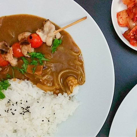 저는 카레에 양파만 볶아 넣는걸 좋아해요. 진하게 만들어 꼬치 올려주면 더 맛있더라구요.