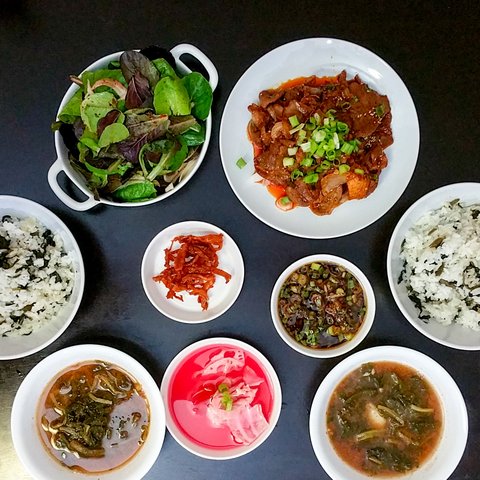 언제 먹었는지 기억나지 않는 곤드레 밥과 제육볶음이네요.