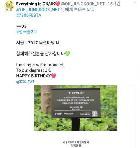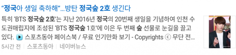 아까 기사떴잖아 정국숲 생긴다고