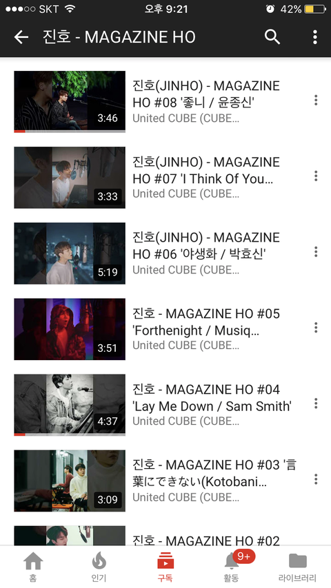펜타곤 진호? 도 주기는 모르지만 커버곡 맨날 내는거 보고 놀람 진호 말고 다른 멤버들도 내주던데 콘텐츠는 진짜 다양한거같아 뭔가 큐브판 세로라이브같은 느낌..