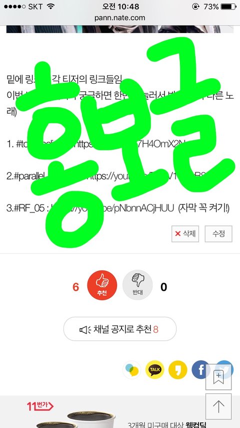 그런데 종종 ㅇㅌ에 홍보글 올렸냐고 묻는 질문도 있고 언제 올릴거냐는 질문도 많이 본 걸 보아 아직 잘 모르는거같아 그리고 지금 분위기 보니까 실트총공 하려면 본격적으로 시동 걸어야 하는데 시간 정해준 총대에게 정말 고맙고 미안하지만 너희가 원한다면 더 이른시간에 올리는 것도 나쁘지 않다고 생각해.