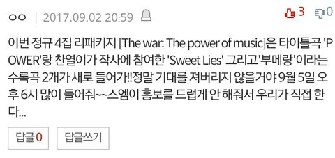 난 이 댓글 베댓 올리고 싶음 수록곡 홍보도 있음