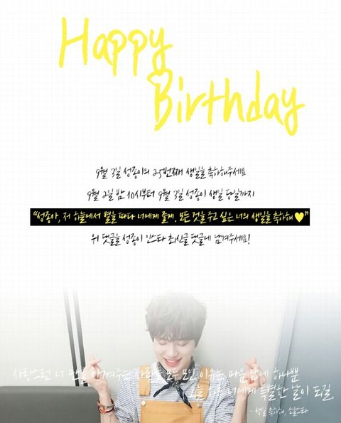성종아, 저 하늘에서 별을 따다 너에게 줄게. 모든것을 주고 싶은 너의 생일을 축하해❤