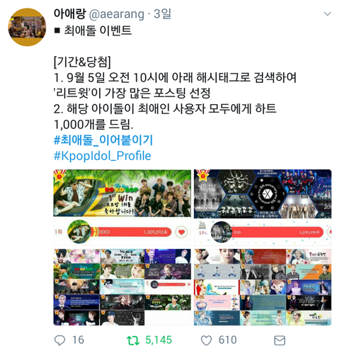 알티 젤 많은 곳 가수 팬 모두한테 하트 1000개씩 준대