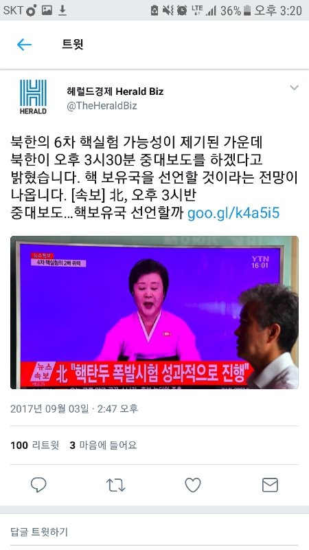 중대발표 핵실험성공했으니 건들면뒤진다 이런뉘앙스의