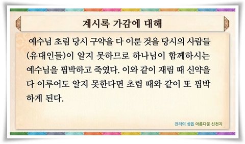 그러니 내가 아무리 열심 있는 신앙을 해도 계시록을 모르면,