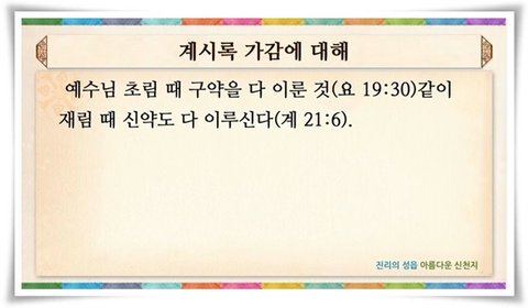 하나님의 약속은 계시록에서 이루어집니다.