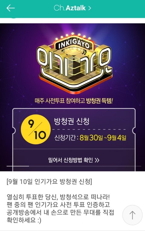 방청권 신청 : 아지톡 ~9.4일까지 신청