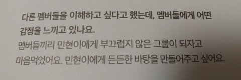오늘 ㄴㅇㅅㅌ 데뷔 2000일 기념 포토북이 발매되어 나도 받아봤거든. ^^ 민현이 사진은 없지만 멤버들이 민현이 많이 그리워 하는게 느껴지더라. 멤버들 인터뷰 내용도 같이 실렸거든.
