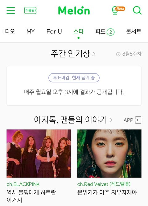 (멜론-스타-주간인기 투표는 밑으로 한참 내려가야 있어)