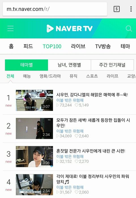 이불밖 시우민 네이버캐스트 순위 점령 ㄷㄷ