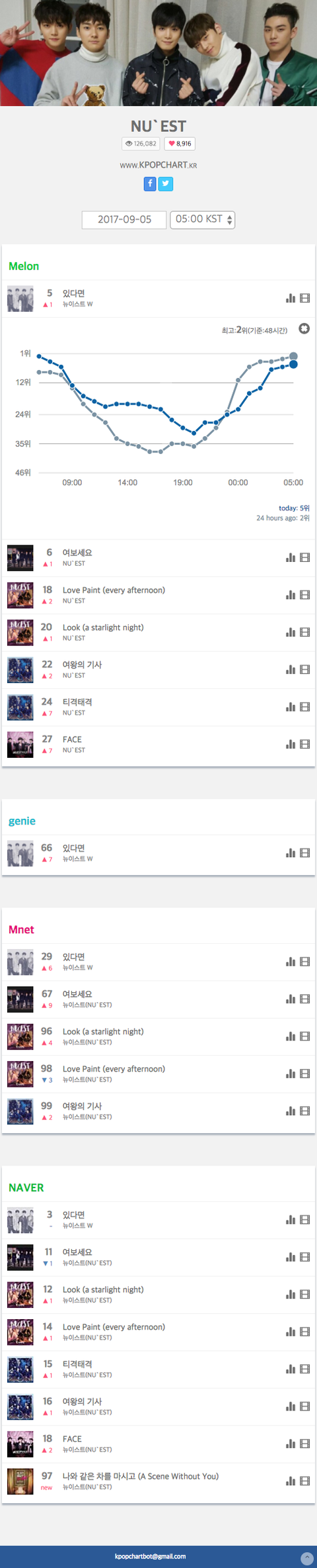 새벽6시차트(서수 유지, 네뮤 막내 2위 헐)