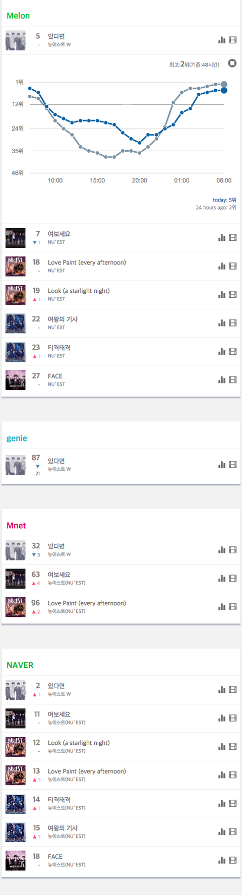 새벽6시차트(서수 유지, 네뮤 막내 2위 헐)