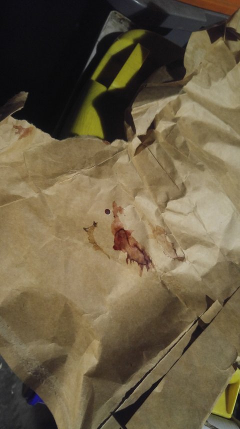 죽고나서 몸을 감싼 종이에 묻어있는 피입니다..