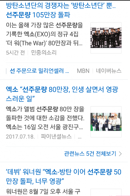 워너블이야 진짜 크고 멋있고 코어 세다고 생각했던 엑소 방탄이랑 같이 올려줘서 고마워 방탄도 엑소도 워너원도 서로 비교해서 마음 상하지 않고 다 잘됐으면 좋겠어❤
