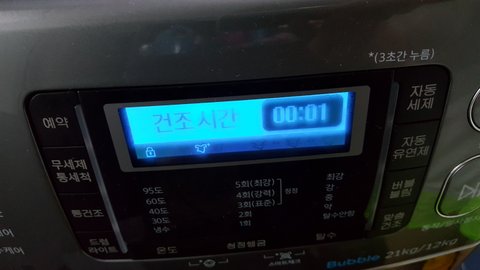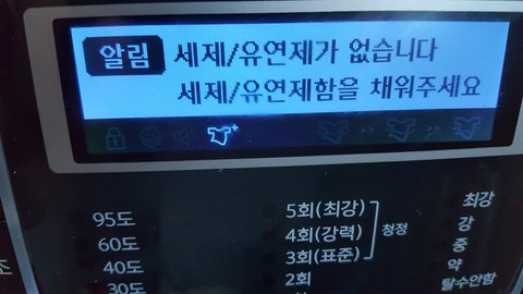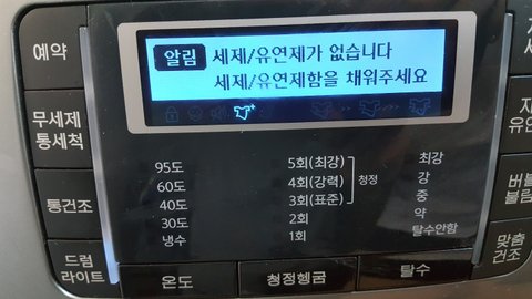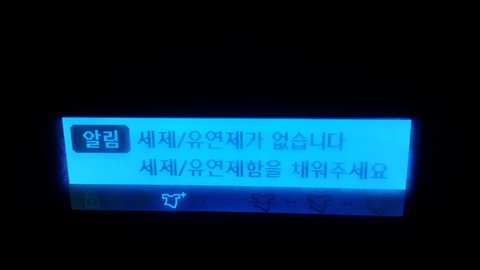 이세탁기에 액정에 습기 차는게 정상인지 알고싶어요 사진으로 뿌옇게 보이는 부분이 습기 찬부분입