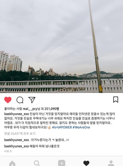 공인으로써 이슈 될꺼 각오하고 저 글 올린거 같은데 이쯤이면 그만 괴롭힐때 됐잖냐 아니라잖아 팬싸에서도 믿지말라하고 직접 저렇게 언급 할 정도면 알 수 있잖아 그만해 니네도 쪽팔리지도 않니 대갈 텅텅 티내지 말고 공부나 더 해 솔직히 변백현도 고마운게 저렇게 인별에 대놓고 얘기해줄줄 모름