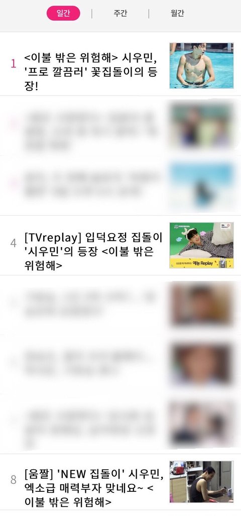 엠비시 연예홈 많이 본 뉴스 일간 랭킹 1, 4, 8위가 시우민이다!!