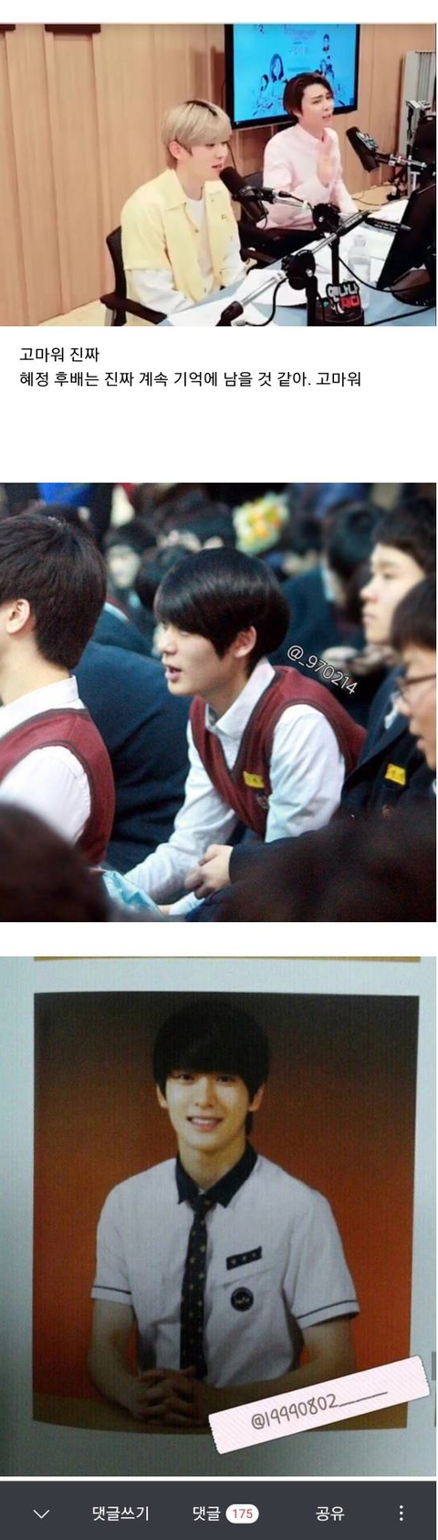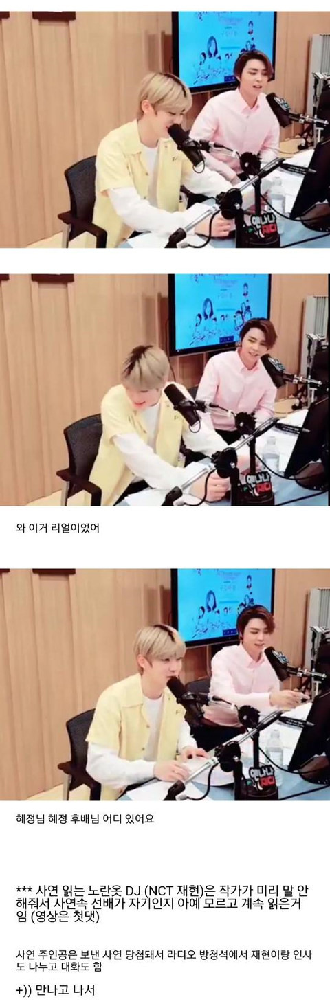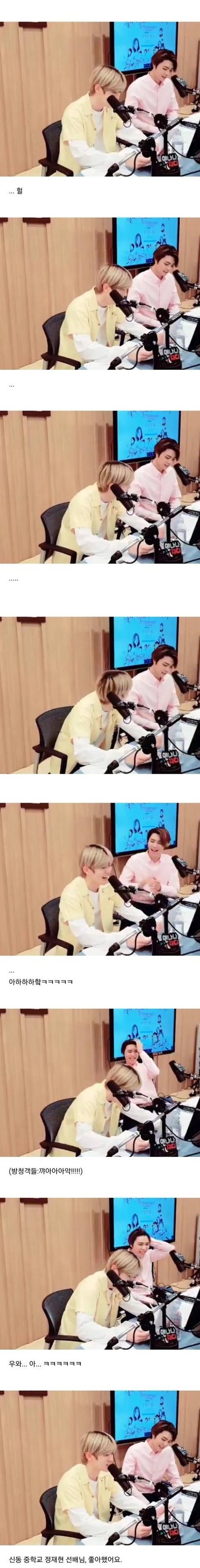 근데 그 신동중학교에서 라디오에 재현 짝사랑 하던 후배 사연도 나옴