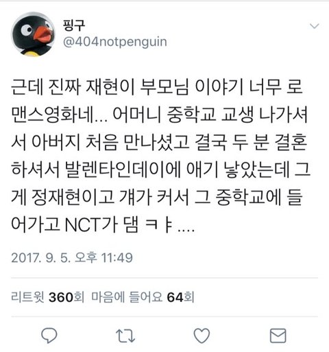 sm에서 나온 엔시티란 그룹에 재현이라는 멤버가 있는데 재현 어머님이 대학생이셨을 때