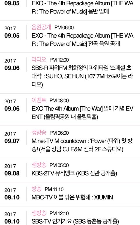 엑소 이번주 스케줄