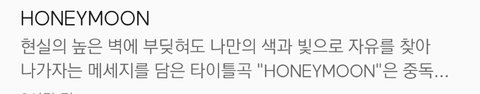 곡 소개는 이런데 왜? 노래 제목은 Honey Moon일까? 궁금해서 찾아 봤는데...