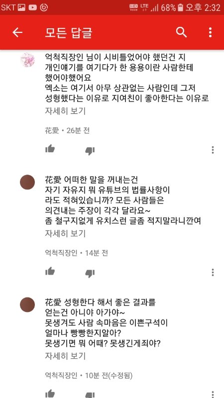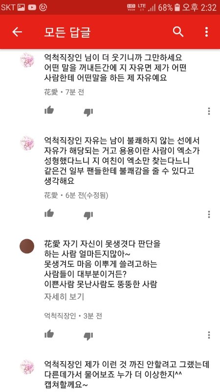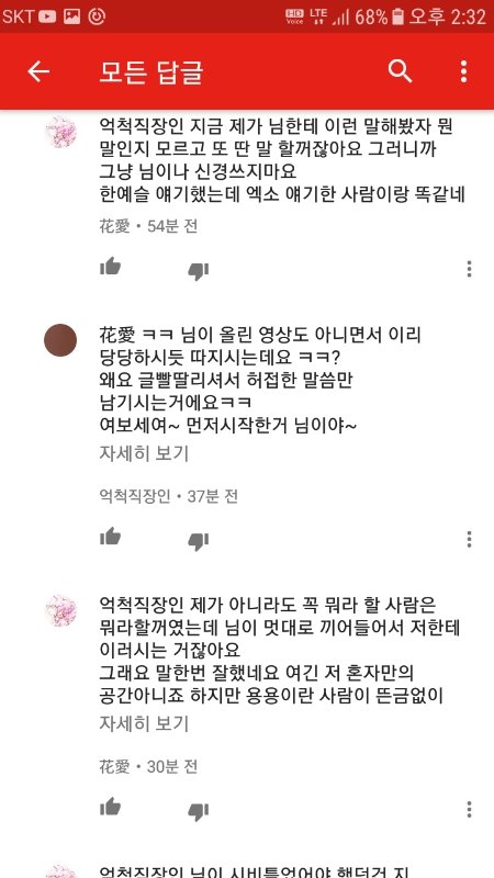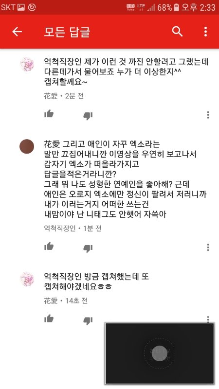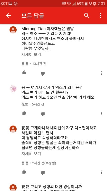 그냥 단지 저기서 갑자기 왜 엑소가 나오고 지 여친 얘기는 왜 꺼내는지 이해가 안되서 뭐라하니까 더러 성질내네요