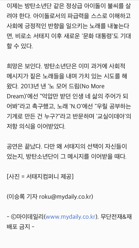 기사가 너무 깔끔하고 담백한게 맘에 들어서 다들 봤으면 좋겠어서 가져왔어