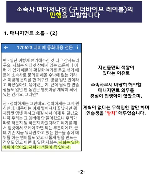 이제는 소속사 나가면 소송걸겠다고 협박하는지 진심 이해가 안감