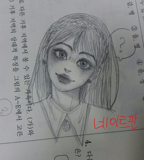 오늘 모의고사 보고 남는시간에 그린 그림이랑 평소에 끄적인 그림인데 한번 봐주라!