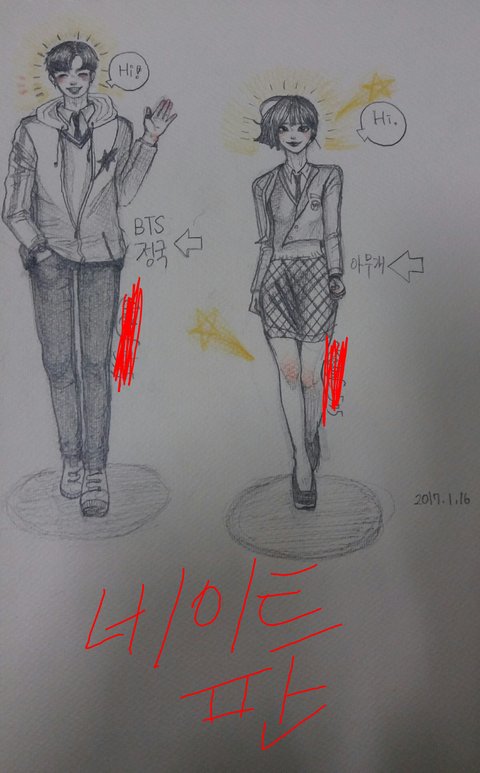 내가 정국씨의 웃는모습을 참 좋아해서ㅎㅎ 그리다가 보니 정국씨 닮...았...늬? 아닌가요...?