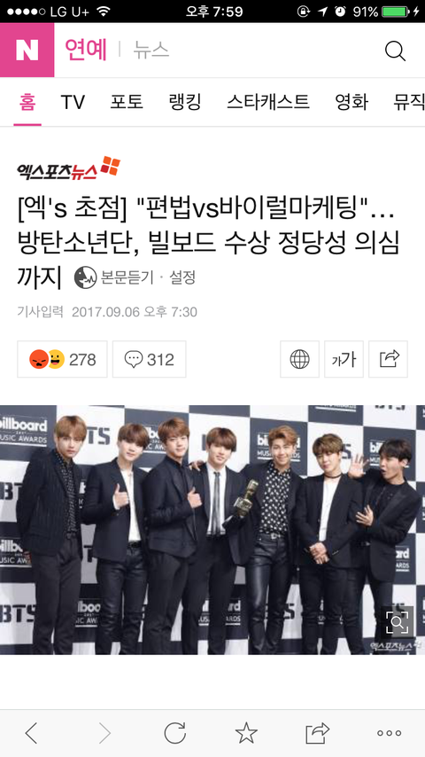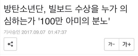 항상 궁금했는데 얘네는 왜 맨날 한국에서 이런대접받음? 얘네 빌보드 상 받은날도 옆에 아미친구가 말해줘서 알았음 빌보드 정도면 마마 이런데랑은 비교도 안될정도로 큰 곳 아니야? 근데 내 기억으로는 수상 기사보다 드라마나 공항패션 기사가 더 많고 순위 높았던걸로 기억함 암튼 좀 맴찢이네