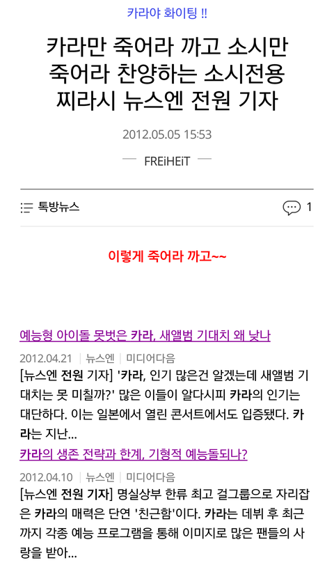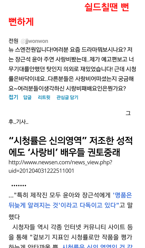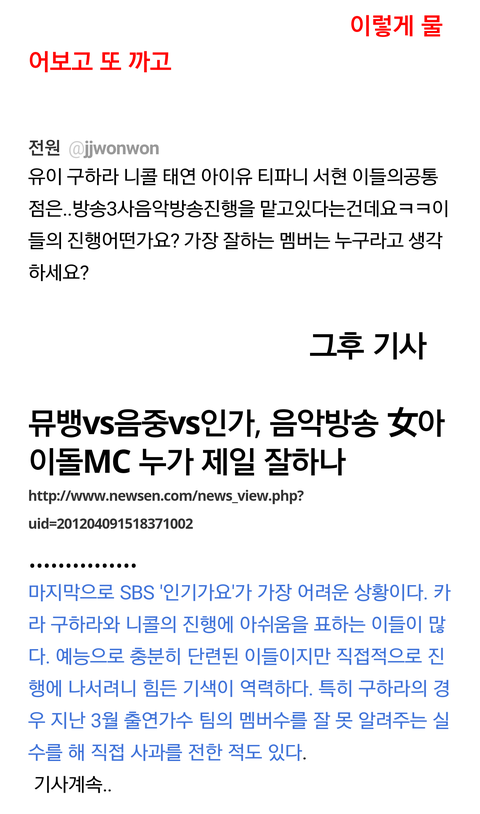 요즘은 일코하다가 중요한 순간에 저렇게 타회사 아이돌에 치명적인 기사 계속해서 쓴다고 하더라고