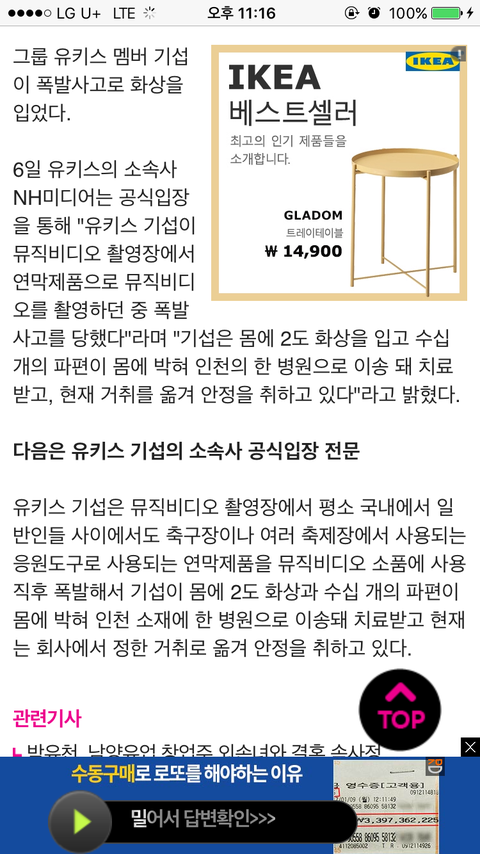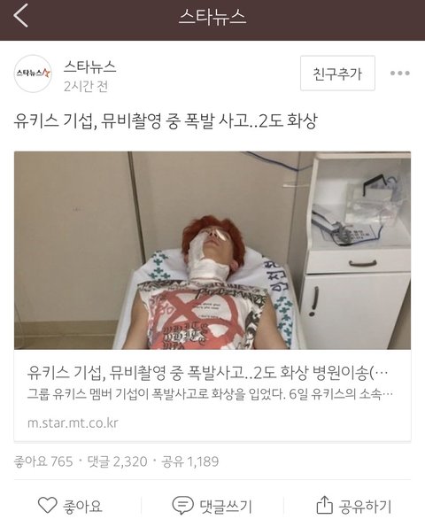 유키스 기섭 화상입었대ㅠㅠㅠㅠ